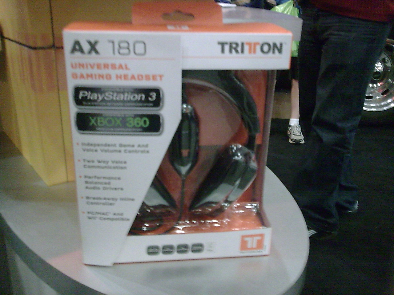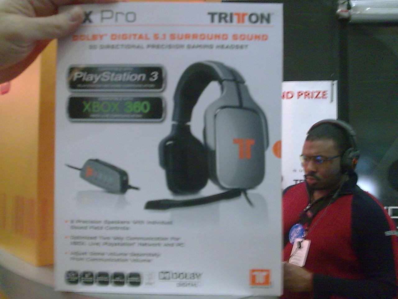 At the Tritton/Gunnar booth-on-wheels Fred Schweer showcased the latest headsets from Tritton Technologies, including the first-of-its-kind 5.1 Dolby Digital Surround Sound headset. "This will rattle your brain, and blow your fucking socks off," said Blueonic. On top of that Schweer was able to give us a peek at the latest in Gunnar's fashionable gamer eye-wear, which not only makes the picture look better, but also gives you less strain in the eyes.