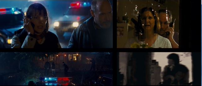 The way they show the Fisher family murder scene is a standoff (see picture above) where he's on the phone with the police and Dr. Abby, who try to tell him what happened in his dream wasn't real. He doesn't believe them, so he kills his wife and son. His final words goes along the lines of, "They aren't going to bother me anymore," shooting his wife, kid and then himself. As you can see that they set up the real video at the bottom of the screen, then the rest were the film's recreations. They did blank out where Fisher shot his wife in the real video, but when you go to the DVD extras they show everything (though it's hard to tell due to the crappy resolution of the police cam).