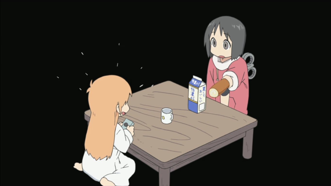 Practically nothing works about this show. The trio of Yuko, Mio and Mai bring forth a level of dullness that is rarely seen in an anime series; in fact it takes a lot of work to make anime boring, so congrats to Kyoto Animation for making the implausible come to existence. I see no reason why the show likes to focus most of its time on these characters, as they literally have nothing of interest to bring to Nichijou. It's the characters that appear sporadically that bring what little life this show has. The only good thing to be said about this show is its animation quality, especially during a chase sequence involving Mio trying to steal back her notebook from Yuko. (Her reason for doing so -- not to mention the punchline -- is only the real big laugh I got from these three characters.) It showcases various styles in even just one episode, and surprisingly it does it well.