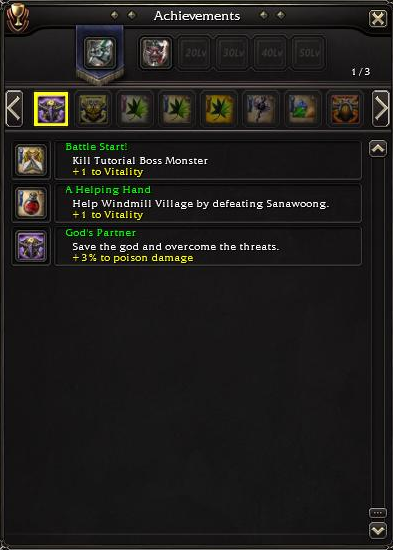 This works well to mix skills from every tree to make your character. You can invest multiple points into a spell to make it better, and if there is another tier of spell you will need to if you want the improved version. You will notice that you get achievement like every other game out there, the trick is that you can “equip” them for a stat boost. You get a new achievement slot for every 10 levels you get.