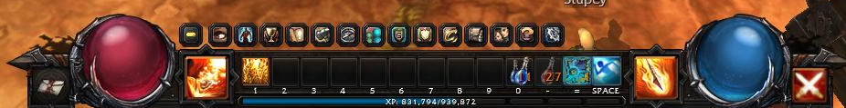 You can break down your items for their crafting system, and you can invest points in just like the skill trees. The only exception is you have to pick one of three crafting trees because your invested points to get the next tier crafting does not affect all trees. The interface is the same as your Diablo/Warcraft interface. However you can assign skills to the upper number pad (1 through =), and bind skills to left and right click. There is a cool little extra right click function that allows you to swap between two right click attacks by hitting Q.