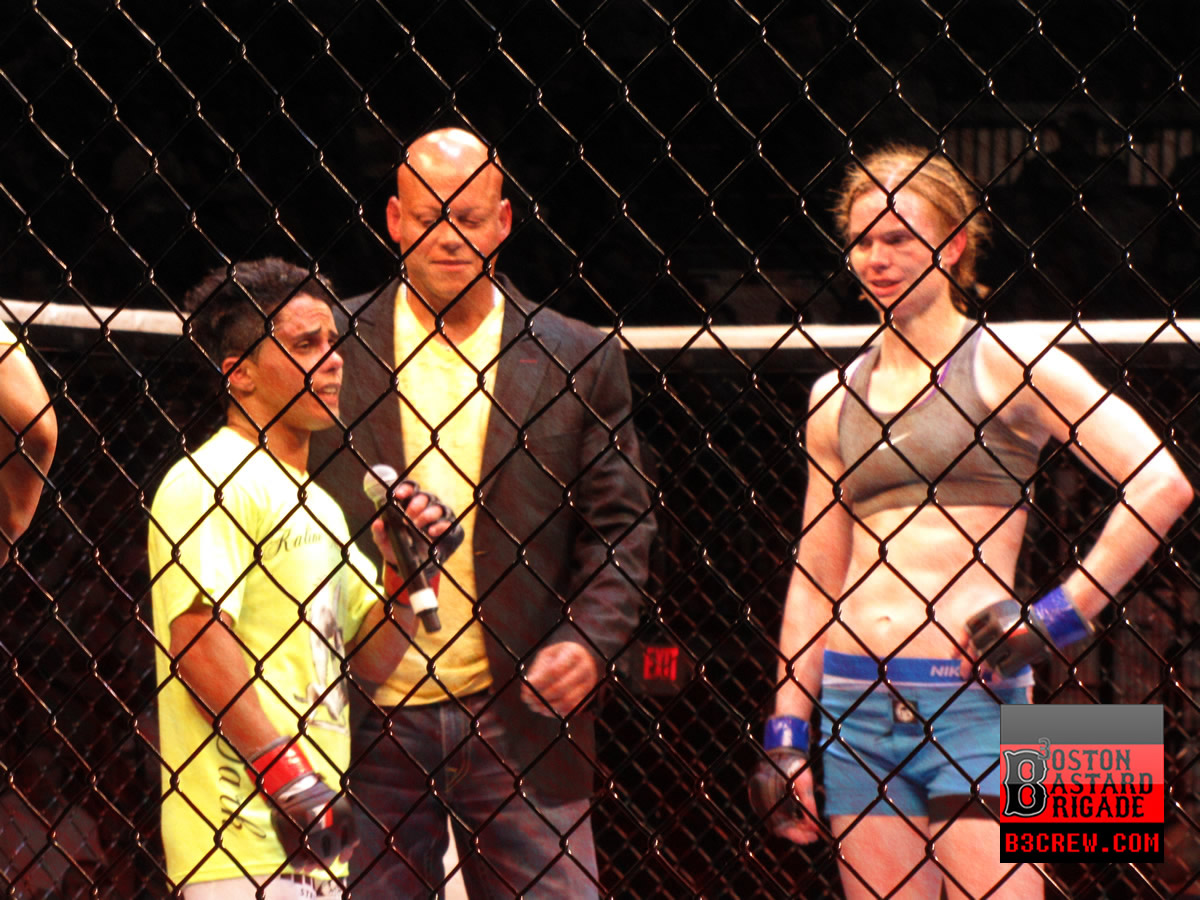 Round 3: The start of this round had both fighters getting in shots on one another, even with the height advantage of Morgan. Medeiros went for a spinning back fist, but did not connect. Medeiros was able to land a kick on the leg of Morgan again, along with a punch to the head. Morgan ended up in a clinch where Medeiros was push up against the cage and brought down. Morgan was able to posture up in the half guard position, and then was able to put a couple more shots. The third round came to an end, with the judge's making their decision. Another great fight for women's MMA. There needs to be more of these kinds of fights since women can kick some serious ass!