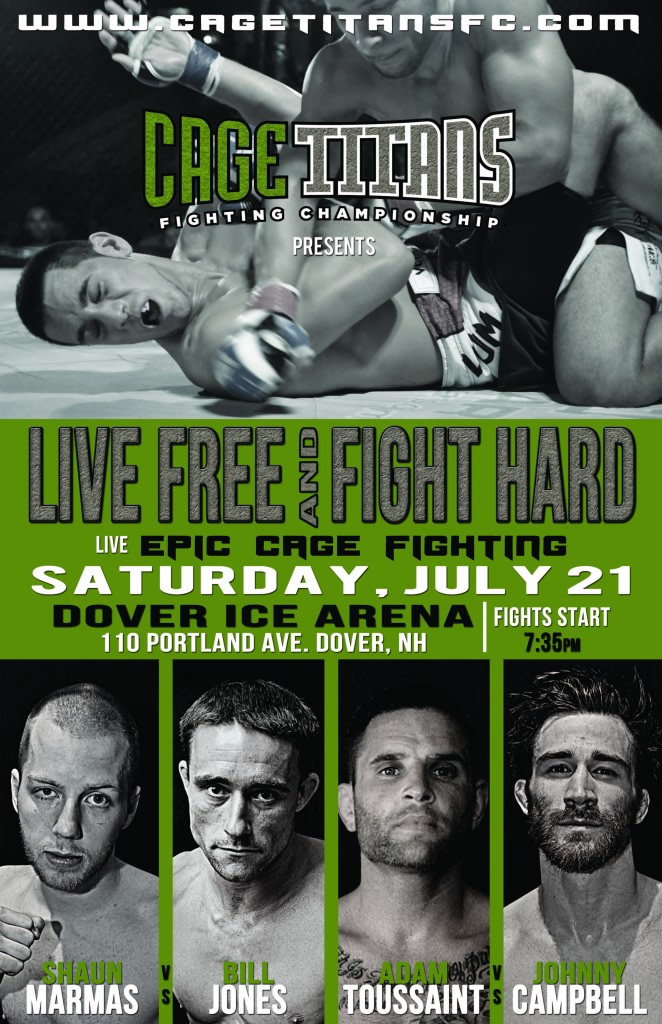 Blood, sweat, and tears were on the menu at the recent Cage Titans event in Dover, NH, and it was served by the bountiful! With bleacher seats all filled up, many fans were forced to stand by the wayside as the fighters went head-on in many battles of speed, strength, and mentality.