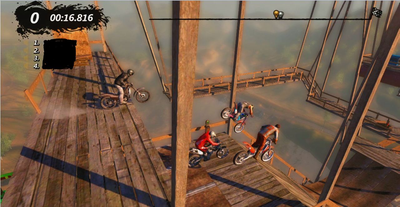 The multiplayer aspect gives you three options. The first is Super Cross, a fast side-by-side race where you have to score points from several tracks and heats to win the match. Trials is a fast single-lane ghost bike race on the easier tracks, in which you score points from several tracks to win the match. Finally there's Hardcore Trials. You have the single-land trials but in the hardcore tracks, scoring points from the several tracks to win the match. If you're up for the challenge, go right ahead and do the Hardcore mode. I have been on it, and there are some douchebags out there wanting to make your life miserable. Believe me: they will make fun of you if you can't get up certain things that they can get up in two seconds. That's how to really rage quit: hearing someone on the other end saying you suck!