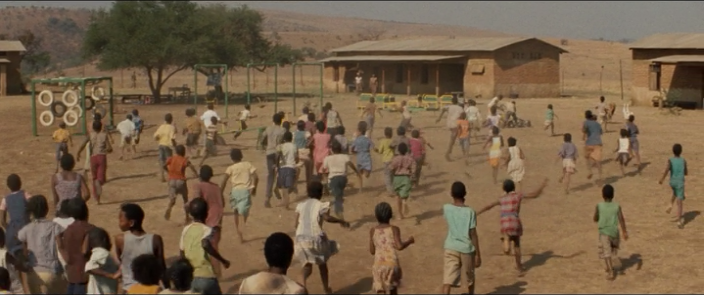 After a little while he goes back to the bar. Just when you think he's going to become a junkie again, he takes his friend Donnie back to his house and detoxes him. With that Sam is at the church, and one of the people that goes to Africa to help children and people of Africa really strikes a chord with Sam. He decides to go over to Africa and see what's going on. Of course where they went to help kids, there isn't much going on and he's helping build stuff. He goes and talks to the two guys that are of the Freedom Fighters. He ask if they can bring him up north to Sudan, and when he gets there he sees the worst of the worst: kids that have been injured by mines and gun shots, with severed limbs and other grotesque injuries.