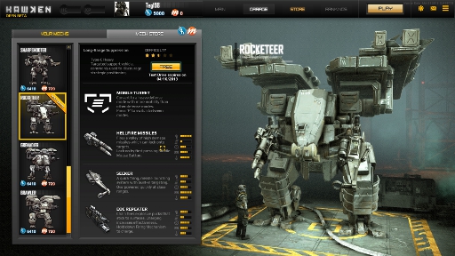 So to get new mechs you have the option of buying new classes to use with skill, or money depending on how quickly you want to unlock them. You start with the middle of the line mech, as it is average at everything it does. As you play you can get a mech that more suits your needs, whether you want a faster mech or a slow but heavily armored one. You can then set up weapons to the mech to better suit your style of play. The more you play in a mech, the better you get with it, unlocking slight advantages for specializing in a type of mech.