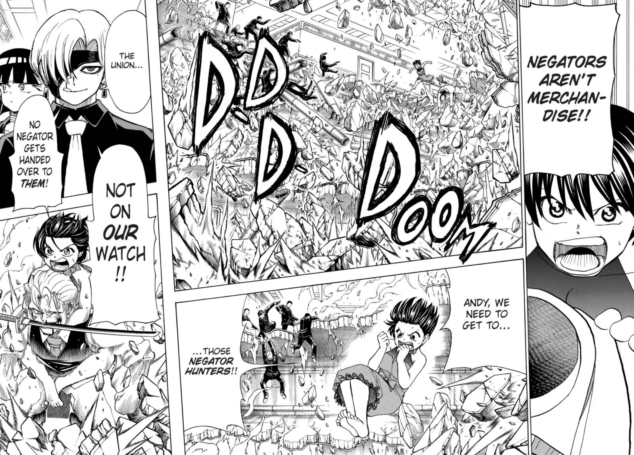 The battle with Victhor rages onward, as Union members throw everything they can at the godly being. But some quick thinking from Fuuko brings them victory, via awakening Andy from deep within Victhor’s being. After things calm down, a new seat appears at the Union’s table, as well as a crazy penalty involving aliens that are itching to conquer Earth. Once that squabble is over, Andy and Fuuko head to Brazil in search of a Negator who’s about to be sold in a black market auction.