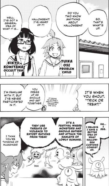 Humor takes up a good chunk of this volume, with every character having a shining moment in the comedic realm. Ren’s attempt to woo Ruru is meet with one chaotic mishap after another, making his quest seem impossible to complete. The Halloween antics with the Occult Club bring forth a lot of imagination, especially for one kooky costume that pays homage to a certain Scottish monster. Perhaps the funniest chapter with everyone involves Ruru and Magu attempting to lose weight, with the humans and gods getting into fit mode via the silliest means.