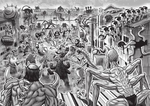 After seeing the good demon Morio attack a town, Keiji sets out to find out what exactly is going on. The gang find another familiar demon and save him, revealing that a parasite’s entered their brain. That’s when Keiji goes to the barn where his father is held captive, with the three devils awaiting. What happens next is nothing sort of a pure shonen manga spectacle…but with chickens!