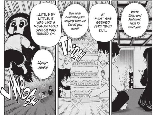 It’s a good thing Mission: Yozakura Family is letting its readers breathe a bit after such a harrowing mission. The siblings return to training, and Taiyo & Mutsumi finally get their closure surrounding Tanpopo. The dog-eared Ai becomes an adoptive part of the family, with the young married couple acting like the mom & dad she’s never had. There’s even a funny chapter with Shion trying to prepare for a first date, which goes more horrible than you can even imagine.