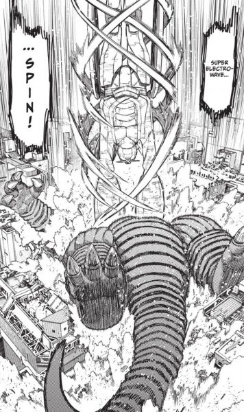 That’s right, Kinta’s a pretty — and I’m using that word VERY loosely — smart fellow, especially when it comes to the world of kaiju monsters. And it’s a good thing, because there’s a behemoth that looks like a certain character often hanging around Toho Cinemas in Shinjuku. Although Okarun figures out a plan to take on the monster, it’s Kinta that comes up with the main design to defeat it. After all, if you want to defeat a giant monster, you need to go full-on Mighty Morphin Power Rangers!