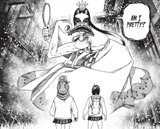 This fight winds up being the perfect opportunity for Vamola to win Momo’s trust. It also results in one of the goofiest battles in the manga’s history. Magic mirrors, German suplexes, a little makeup and pose-striking, and a little word akin to saying “Beetlejuice” are what’s mixed together to make what turns into a great bonding moment for Momo and Vamola. Not only is it beautifully (and not-so beautifully) drawn, but it’s funny as all Hell!