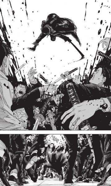 It’s in the action where Kagurabachi finds its lease on life. These battles call back to classic samurai and yakuza films, with more of a modern mentality than one from the Edo or Showa period. The first battle against the Korogumi sets up the reader for what to expect when the time to fight comes. A lot of swordplay, a hint of magic, and the occasional snappy one-liner all make up a recipe for a bountiful of death and destruction. And when you flip the pages to see this chaos yourself, you’ll easily understand why this manga has been one of the most talked-about in the last year.