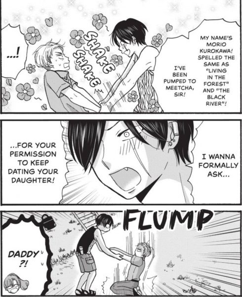 Quickly, not only does Yukiko’s papa see the good in Morio, he also realizes why he’s been the best boyfriend for his daughter. Morio has grown up with a lot of bad luck in his life, ranging from being treated over his facial scar to having neither of his parents in his life. But this is a guy who takes the bad things around him, and uses that energy to spread good feelings and a bountiful of cheer. Author Uoyama has crafted the perfect boyfriend in Morio, with him being the kind of character that readers can actually learn a thing or two about having a big heart.