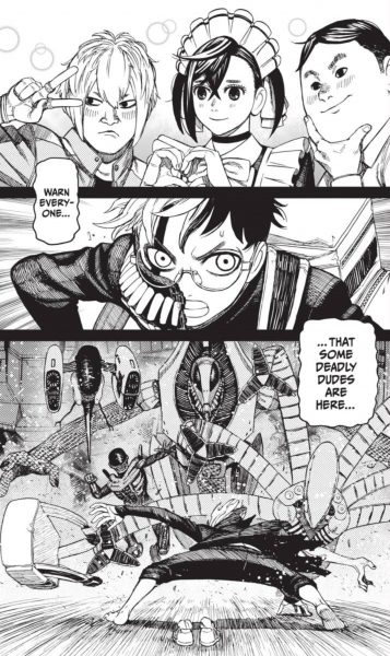 Momo and Okarun have gathered a pretty good team in the last couple of volumes. Their new addition Vamola is still something of a mystery, but as of now, she seems to be on the side of good. After all, she’s got a thing for Okarun, and although Momo despises that, she gets along pretty well with her. However, everyone on the team goes through the wringer in both physical and mental ways.