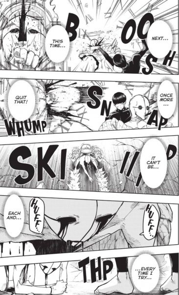 Innocent Zero presents his final form, one of godly powers. His appearance brings millions to their knees, all except for Mash, who cares less about power and more about whether they’re good or evil. If they’re bad, no matter their level power, Mash Burnedead’s going to mash their face in over and over again. Oddly enough, that is almost exactly what he does.