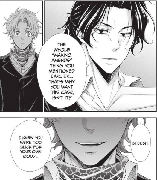 As he’s still recovering from injuries, our titular anti-hero of Moriarty the Patriot takes a back seat from this adventure. Instead, Sherlock and Billy head out west to deal with the bandits and help the townsfolk earn back its courage and land. Funny enough, it reminds me of how Black Bart takes the task of rescuing Rock Ridge in Blazing Saddles, albeit with less silliness and more cunning strategy. But it does go for some big laughs, especially when it comes to the way the duo surprise the locals and baddies with their words and skills.