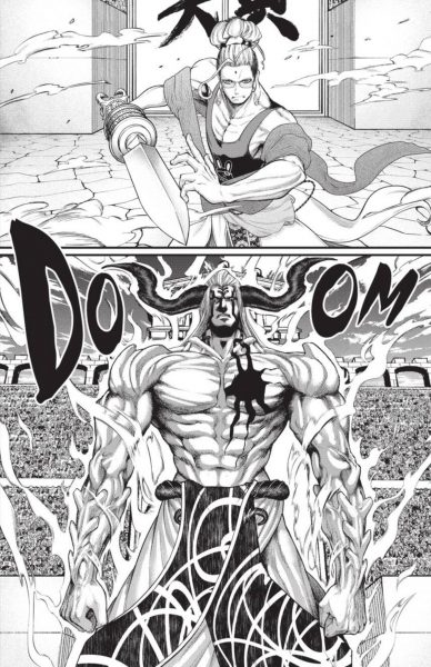 Buddha’s fight with Zerofuku has become something else entirely. In fact, his brand-new form is someone that not even the gods can name! That’s when the slickest and cunning of gods Hades arrives, and tells his youngest brother Zeus who Zerofuku now is: Hajun of Helheim! And everyone in that colosseum will soon see why Hajun is truly bad news!