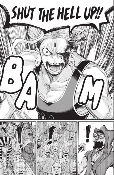 And then, it’s anyone’s guess what will happen in the ring. Buddha and Hajun throw one Divine Punishment after another at each other, as eyes are destroyed, limbs are ripped, and blood paints the ground of the colosseum. The visual detail in the blows, the cuts, and the emotion on these characters’ faces are some of artist Azychika’s finest works. Finally, after what has been one of the most exciting battles in the series yet, the dust settles.