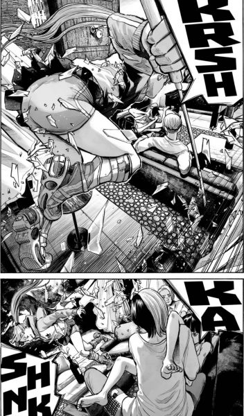 Asano throws a whole lot at his readers in the first few chapters of Mujina Into the Deep. Made up of a two-part prologue and a four-part first chapter, you get a great idea as to what kind of place the world has become. In some instances, things appear to be fine…if you are treated as a citizen. However, if you have no rights, you are no better than a rat residing in the sewers underneath Tokyo.