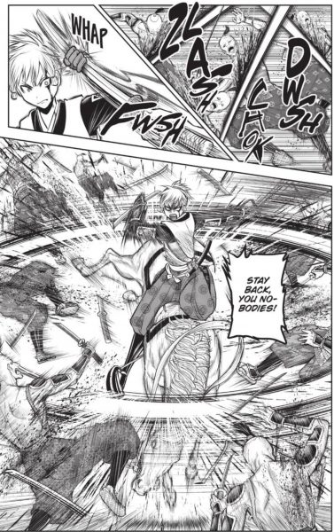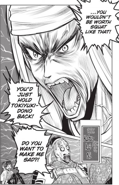 When it desires to, The Elusive Samurai can give you whiplash. This often happens when the tone of the story suddenly changes from lighthearted to brutally dark, something Yusei Matsui’s been doing ever since the first chapter. But sometimes, there can be a comedic whiplash, where a joke and gag come out of nowhere, causing you to laugh after taking a moment to realize what just happened. In Volume Sixteen of The Elusive Samurai, we meet a walking, talking whiplash called Toki Yorito.