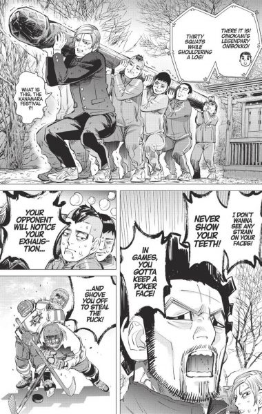 Training time has arrived for all future hockey prospects, as Rou and the other fledglings go through the worst kind of hell for Coach Nihei. No water until practice is over, and this sort of training is as brutal as one can imagine it to be. Perhaps the scariest of training involves the Onibokko, a giant log that teammates must work together to lift as they perform squats. Fuck up once, and it’s an additional ten squats added to the regimen.