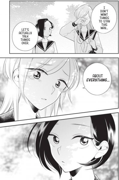 Rainbows After Storms deals with a big misunderstanding between Nanoha and Chidori in the sixth volume’s second half. Yes, these sorts of things can sometimes make my eyes roll, but in a manga where there’s little conflict, it at least lights a fire under these two. Chidori refuses to tell Nanoha why she’s been talking a lot with Mai, since the friends have been discussing Nanoha herself. Suddenly, what should be a fun class trip instead gets drenched in tension, with the couple’s friends wrapped around the situation too.
