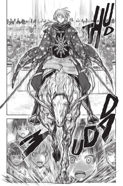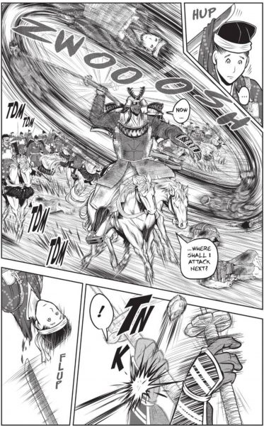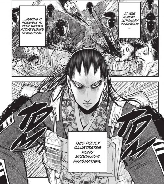 I can’t remember the last time I’ve come across a more terrifyingly hilarious villain quite like Toki Yorito. His introduction in the last volume of The Elusive Samurai had me shocked in horror by his brutality, and yet I couldn’t help but laugh my ass off when he went over-the-top! It’s a real darn shame that Yorito cannot be a part of The Elusive Samurai for much longer, but we have to keep with the historical accuracies of this manga…for the most part. So it’s kind of sad to see this behemoth of blood and guts get taken out in the seventeenth volume.