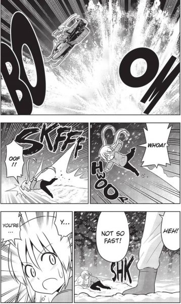 For starters, we continue where we left off from the last volume, with a race in a deadly snowstorm. Nagi and Ruri are facing off against a familiar nun, while the rest attempt to place high in the race to win a big prize. The lower the placement, the smaller the cash prize. And if you come last, you get something worse than bupkis: a debt card that’ll make you consider selling your kidneys to write it off. You can probably guess which person gets stuck with that.