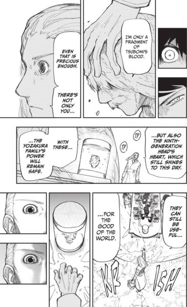 So there you have it. Mutsumi, Kyoichiro, Shion, and the rest of the Yozakuras see what their futures hold, and it’s not pretty. In fact, for a volume of a shonen manga that just concluded a big arc, it’s kind of depressing to see that the siblings don’t get much of a breather before finding out who’s targeting them next. Heck, the Momo arc doesn’t even finish up before Asa arrives and takes him and Rei’s heart away!
