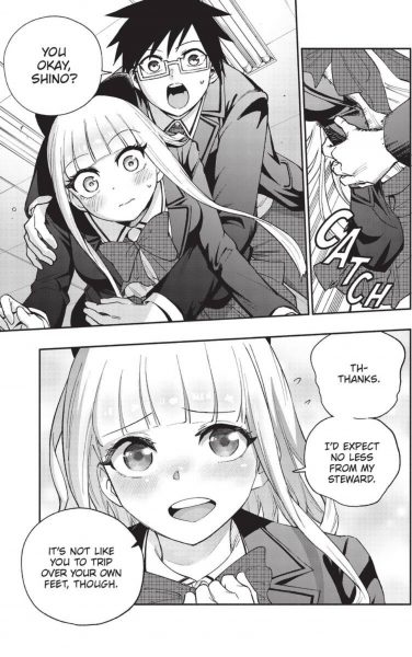 Secret Steward starts off on the usual foot. An average man, Yu Omori, finds himself at the bottom of life’s hole. Shino Hasaba, the richest and prettiest girl at his school, gives Yu the opportunity of a lifetime: become her steward, and she’ll assist with almost anything. Now working under Shino, Yu finds himself with a new purpose, on top of a possible love interest.