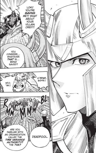 So why is Deadpool back in Japan? Well…the sushi’s good, the music is banging, and there’s currently a 10% off deal going on at his favorite Soapland. But besides this, revenge is on his mind! Tony Stark shows Wade a video of a Spider-Man variant being murdered by the yakuza, and it might be best girl Sakura Spider! But Deadpool won’t be alone for this fight, as Tony sends him the ultimate partner: Loki!
