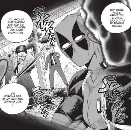 Thankfully, the Spidey Deadpool thinks is having brunch with the parents of Hojo Tokiyuki and Fuuko Izumo is still in this plain of existence. So with a new variation of the Samurai Squad in place, Deadpool makes mince meat out of the yakuza, word bubbles, and the entire Marvel and Shonen Jump canon. However, the yakuza aren’t the main baddies this time; it’s many, many Deadpool variants from the multiverse!