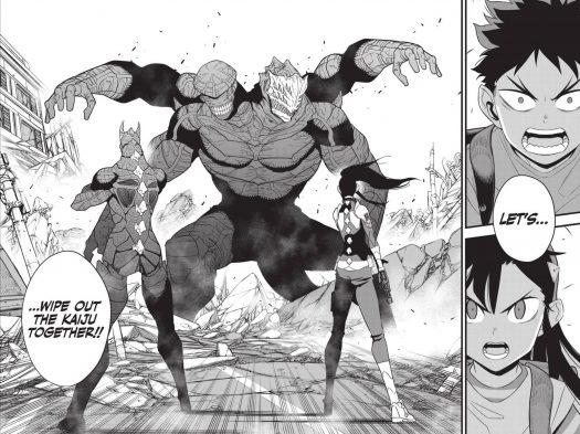 It’s at this moment when Kaiju No. 8 reminds its readers of Kafka and Mina’s bond. A friendship that’s lasted a lifetime, the two have vowed to work side-by-side to protect humanity. Although Mina joined the squad a lot earlier than Kafka, his drive to stand with her in battle was always the root of his strength. And now, with the fate of Japan and quite possibly the world in their hands, the duo take on a mighty threat. But do they do it well?